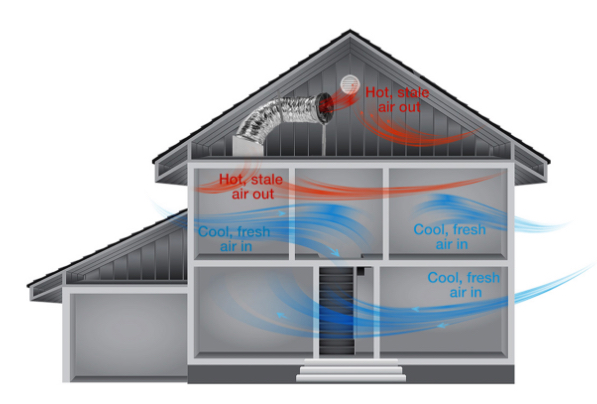 Using our Whole House Fan will cool the air in your house, as well as the attic and overall structure of your home.